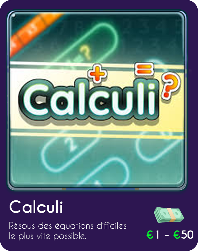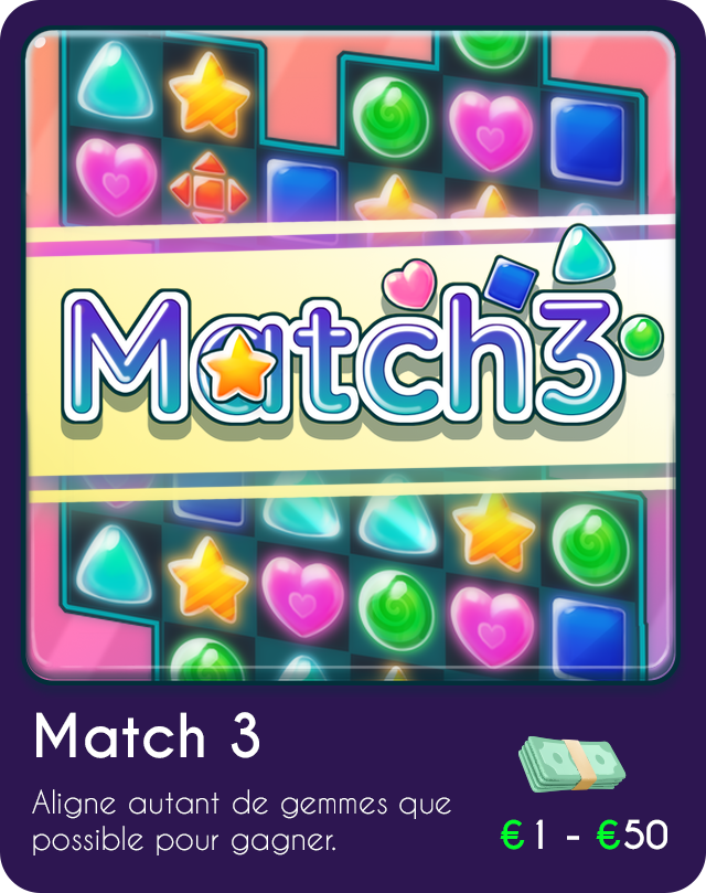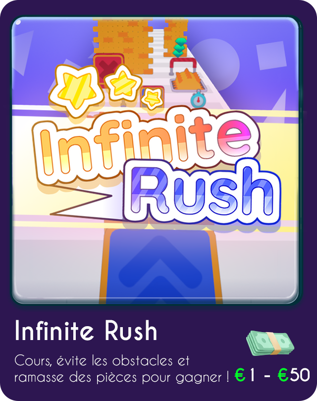 Entraîne-toi gratuitement ou mise directement de 1€ à 50€ pour tenter de remporter du cash. Plus tu mises, plus les récompenses grimpent. Chaque partie réunit 1000 joueurs et les 3 meilleurs repartent avec un prix.